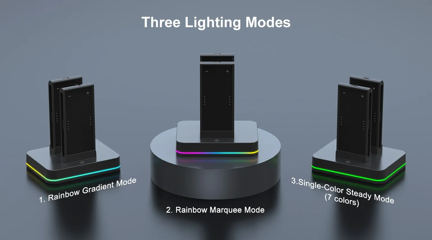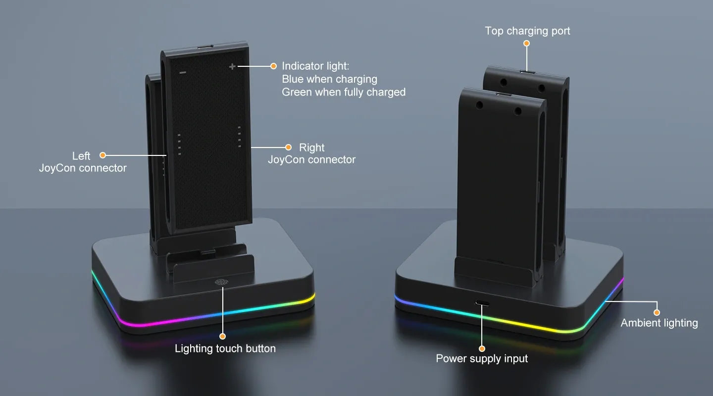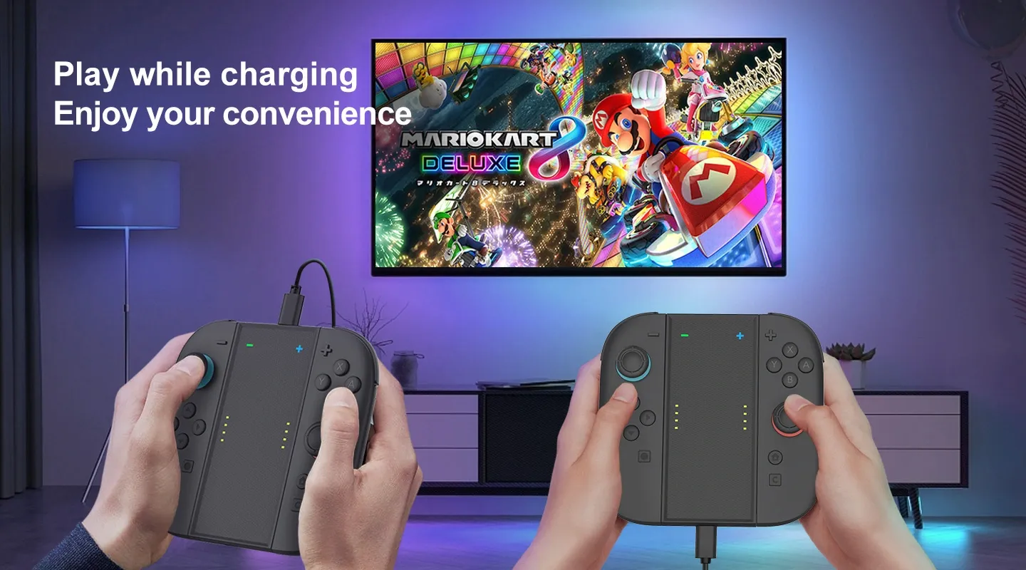 The is a Type-C powered charging accessory designed specifically for Switch2 JoyCon controllers. It supports simultaneous charging for up to 4 JoyCons, delivering a stable DC 5V output with 250mA per controller. Featuring a compact and efficient design, it operates at 1.25W × 4 with a reliable DC 5V, 2A input. it's an ideal charging solution for Switch2 users.