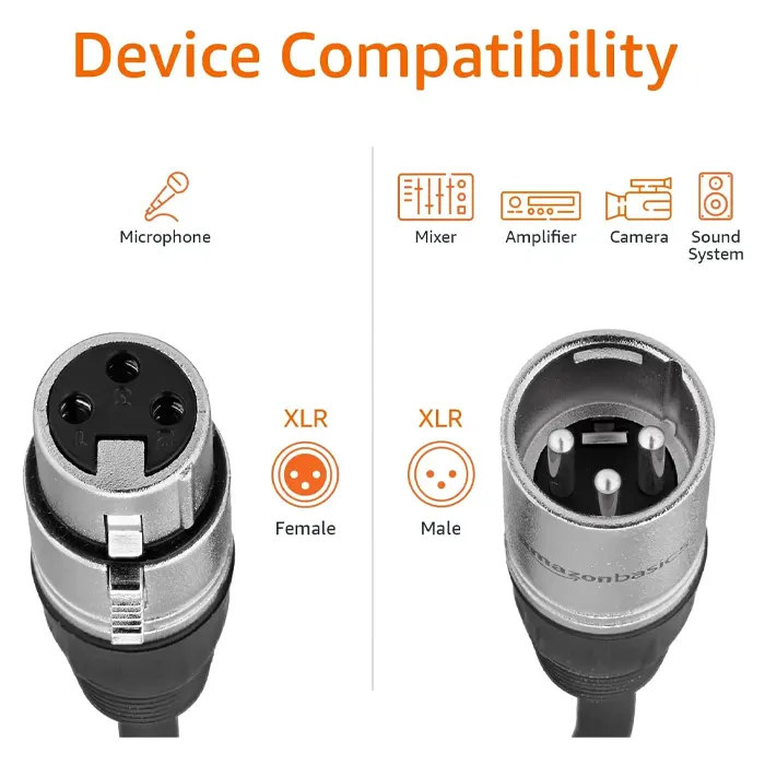 Product NameAmazon Basics Standard XLR Male to Female Balanced Microphone Cable - 6 Feet, Black