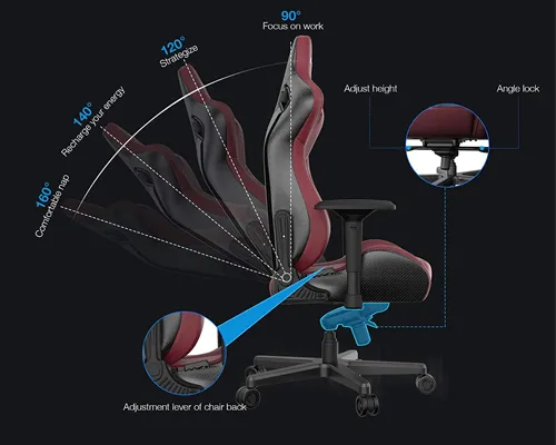 Not only provide the support for game and work, the adjustable design to drawing closer to the desk and finding the perfect height of the chair