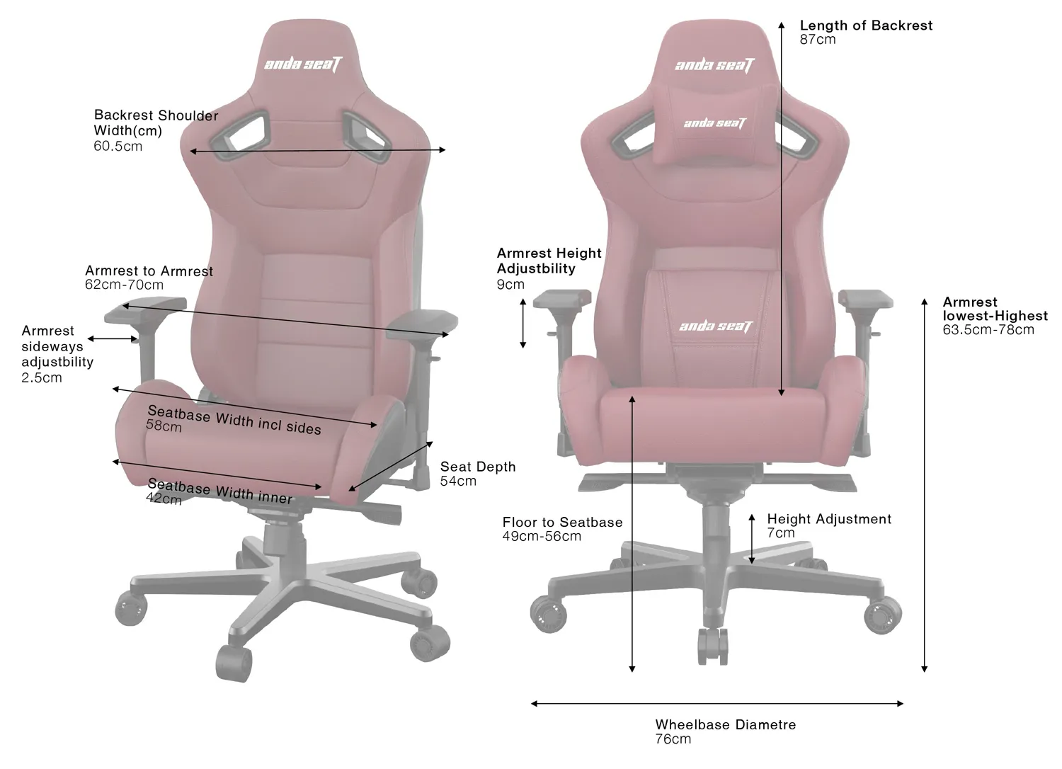 Anda Seat 5-Star Aluminum base was designed and built to provide impressive stableness and durability, every aluminum wheelbase is not just perfectly balanced but reinforced with ribs and gussets.