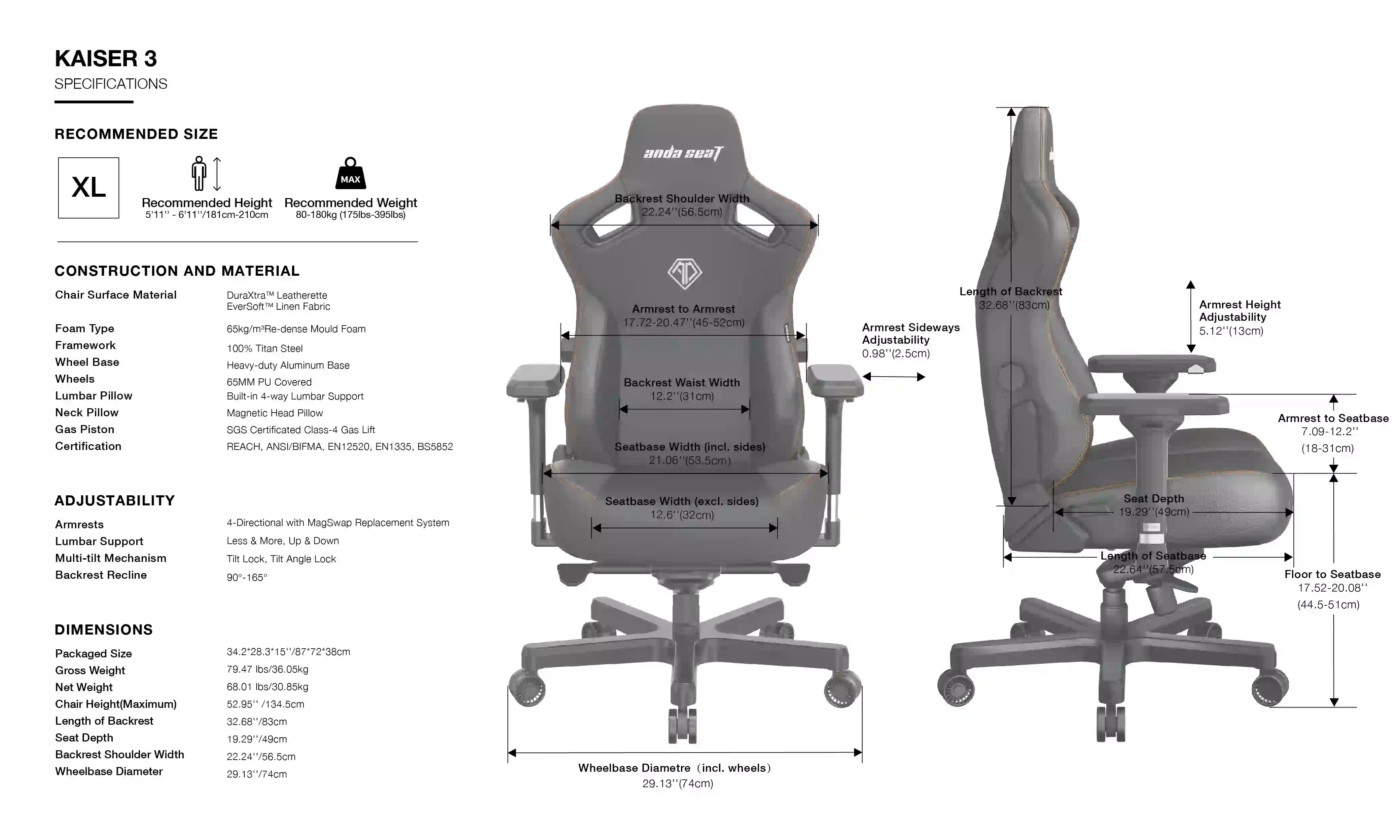 Product NameAndaseat Kaiser 3 Series Premium Ergonomic Gaming Chair Xl Size (Enlarged) - Classic Maroon