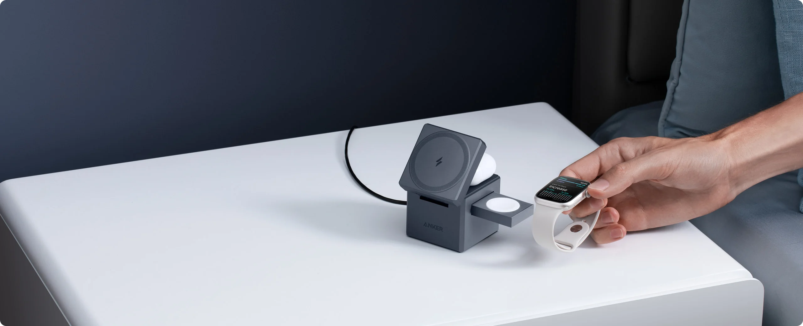 Anker 3-in-1 Cube is not only for your iPhone—it's also officially certified for Apple Watch fast charging. Seamlessly power up your Apple Watch Ultra / 9 / 8 / 7 series with the quick charging feature, so your watch is ready when you are.
