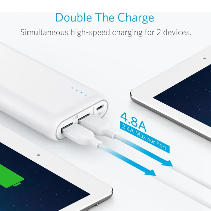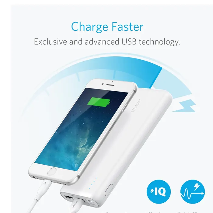 High-Speed Charging PowerIQ and VoltageBoost combine to deliver the fastest possible charge (does not support Qualcomm Quick Charge). Recharges itself in 10 hours with a 2 amp charger, phone chargers (generally 1 amp) may take up to 20 hours.