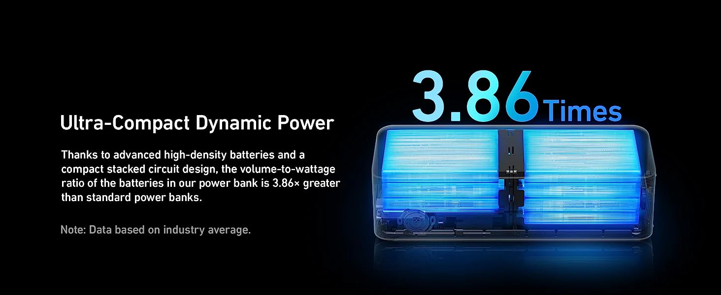 High-Speed Recharge: The 65W rapid recharge via the USB-C port enables the power bank to be fully recharged in just 45 minutes.