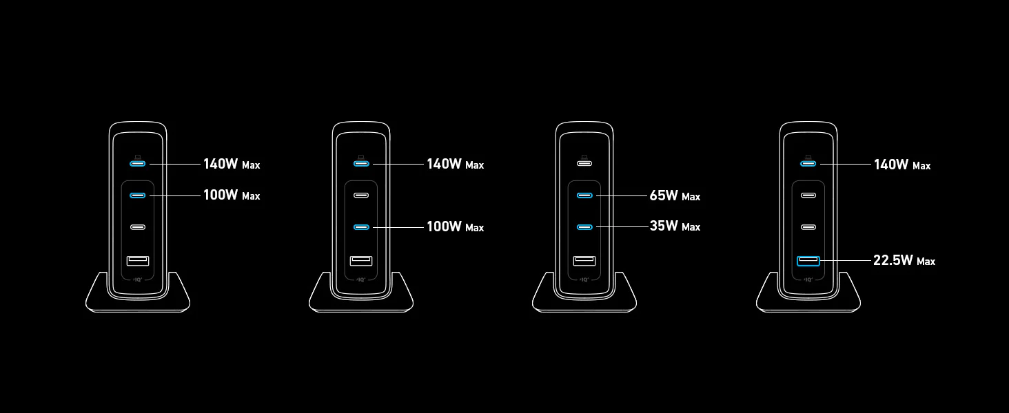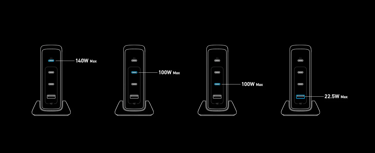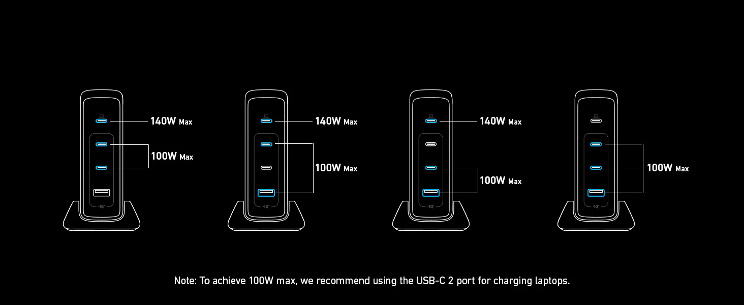 USB-C1+(USB-C3+USB-A): 140W+100W Max