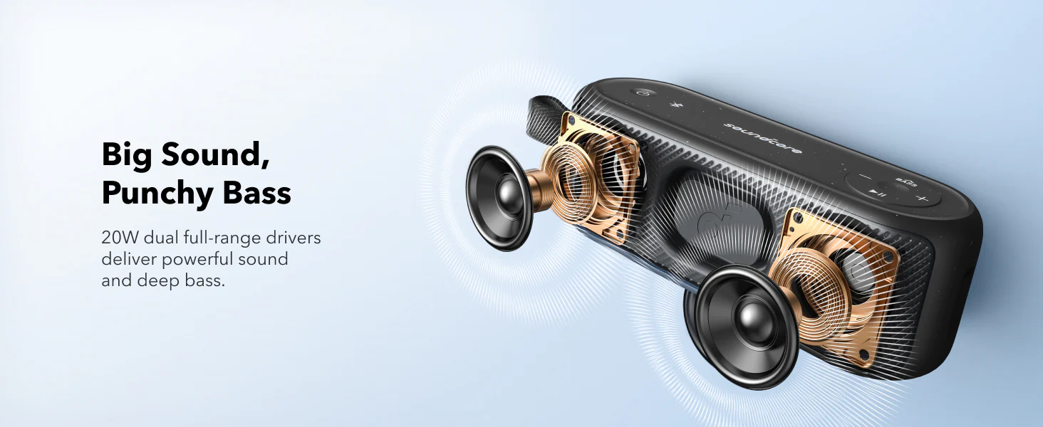 Stereo Sound with 2 Full Range Drivers: Feel the music come alive with powerful and punchy stereo sound.