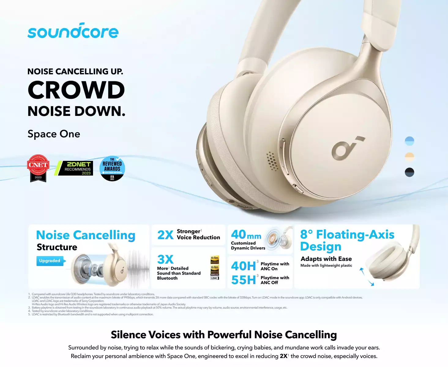 Product NameAnker Soundcore Space One Active Noise Cancelling Headphones - Latte Cream