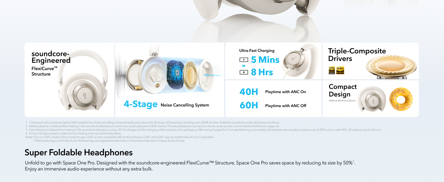 • soundcore-Engineered FlexiCurve™ Structure: Reduces Space One Pro's size by 50% with its super foldable design.