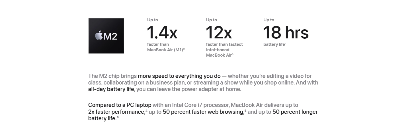 Apple M2 chip8-core CPU with 4 performance cores and 4 efficiency cores