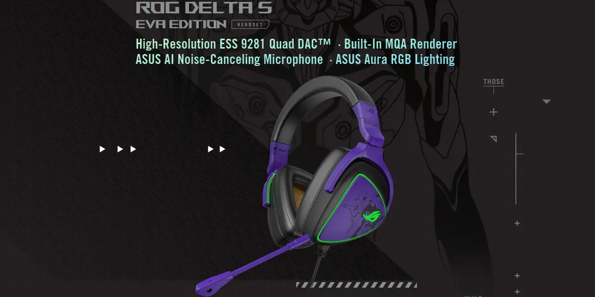 It’s 2022. The Republic of Gamers is launching new equipment for the EVANGELION project. The ROG Delta S EVA Edition headset encapsulates a hi-fi-grade ESS 9281 QUAD DAC™ and ASUS AI Noise-Canceling Microphone within a lightweight shell that features EVA-inspired purple-and-green aesthetics and customizable RGB lighting. The total package weighs in at just 300 grams, putting comfort on equal par with impactful sonics and pristine comms.