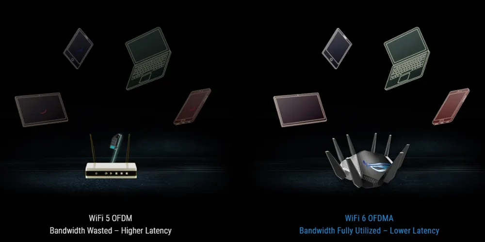 WiFi 6 uses OFDMA and MU-MIMO technology to provide up to 4X more network capacity that WiFi 5, with higher efficiency in multi-device environments. OFDMA allows signals from multiple devices* to be bundled together and transmitted simultaneously, reducing latency for a smoother, more responsive WiFi experience.