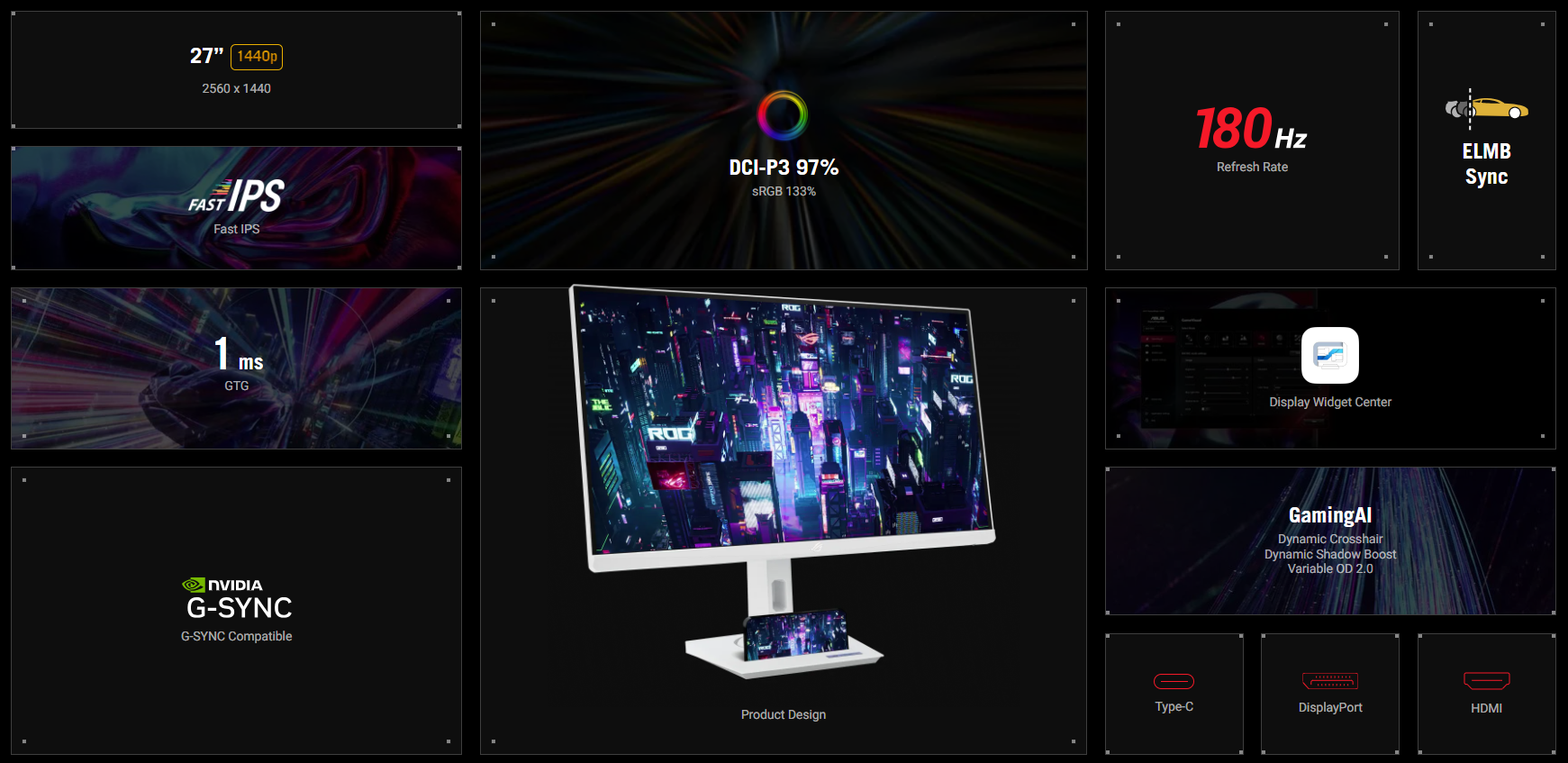 Product NameAsus Rog Strix Xg27acs-w 27-inch Usb Type-c Gaming Monitor 180hz 1ms - White