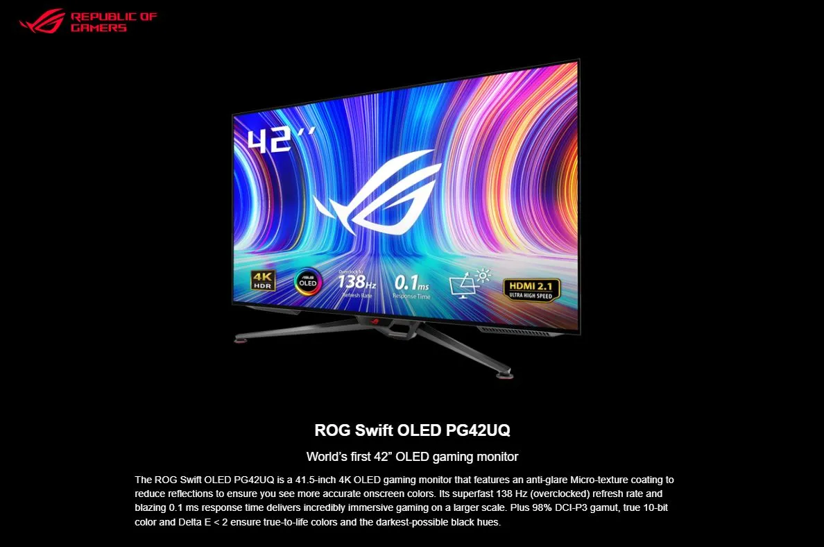 ASUS ROG Swift OLED PG42UQ 42inch Gaming Monitor - 138Hz, 0.1 ms