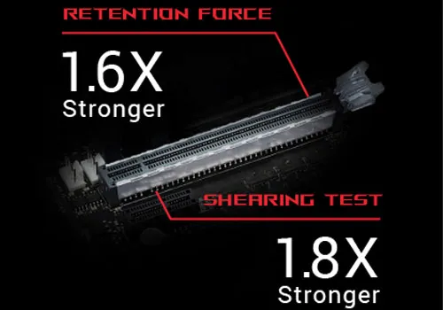Asus Patent Safeslot™ Design Makes Sure Your Graphics Card Connection Is More Stable And Safe. Featuring A New Single-Step, Insert-Molding Manufacturing Process That Integrates Fortifying Metal And Additional Solder Points, Safeslot™ Provides Stronger Pcie Device Retention And Greater Shearing Resistance.
