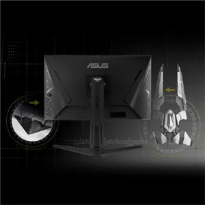TUF Gaming monitor has a stealth fighter inspired design that gives it a dynamic, futuristic look. The rear panel features wing-like elements, giving it a sensation of speed. A svelte, minimalist stand ensures stability and a touch of elegance.