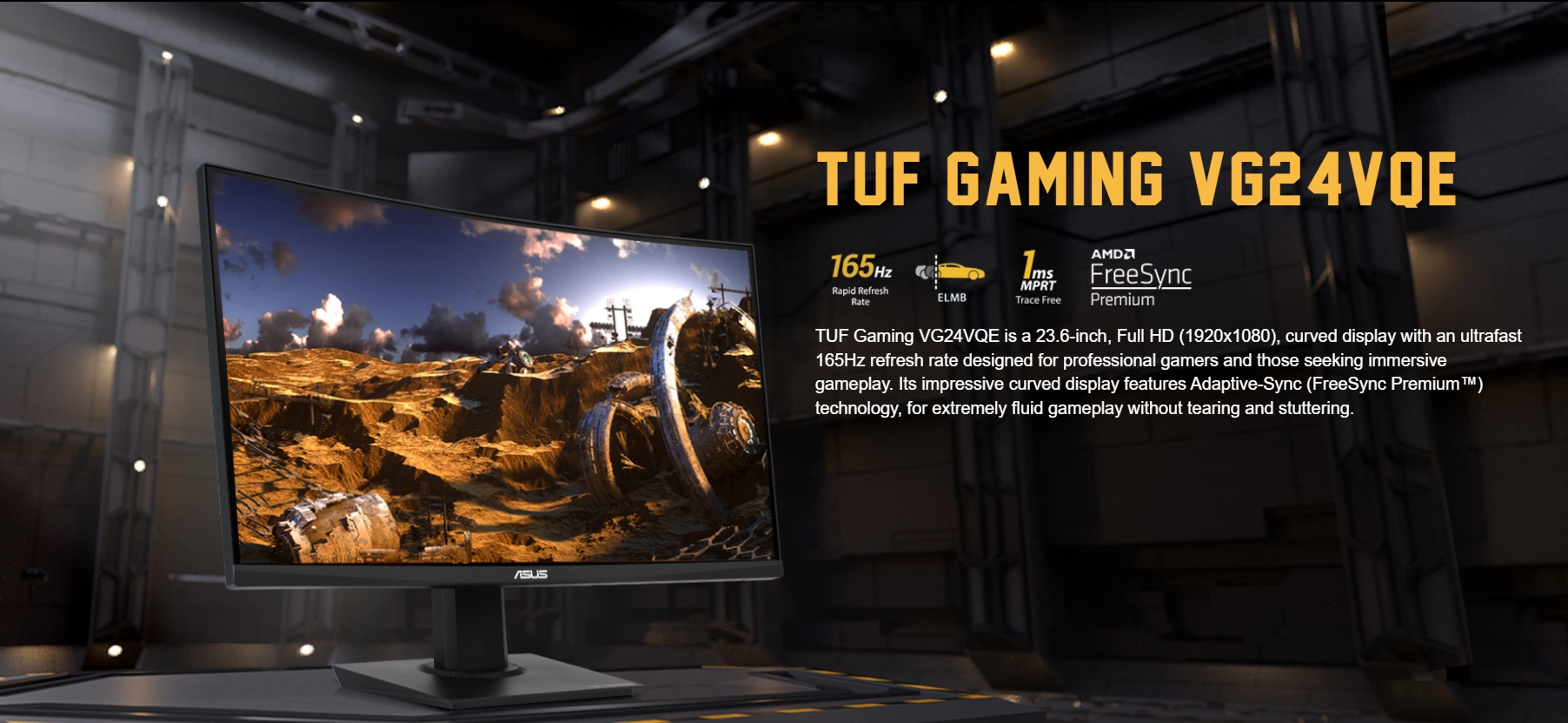 Asus Tuf Gaming Vg24vqe Curved Gaming Monitor – 24 Inch (23.6 Inch Viewable) Full Hd (1920 X 1080), 165hz, Extreme Low Motion Blur™, Freesync™ Premium, 1ms
