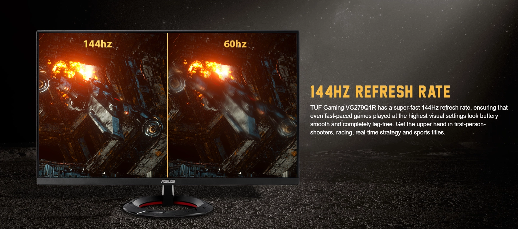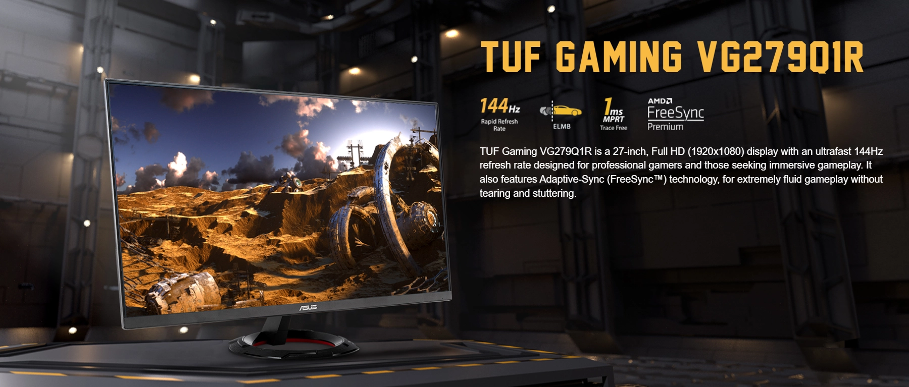 TUF Gaming VG279Q1R Gaming Monitor – 27 inch Full HD (1920 x 1080), IPS, 144Hz, 1ms MPRT, Extreme Low Motion Blur™, FreeSync™ Premium, Shadow Boost