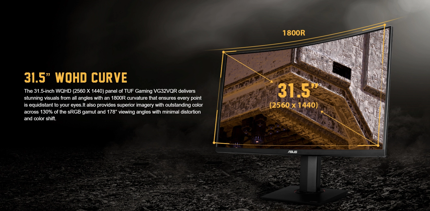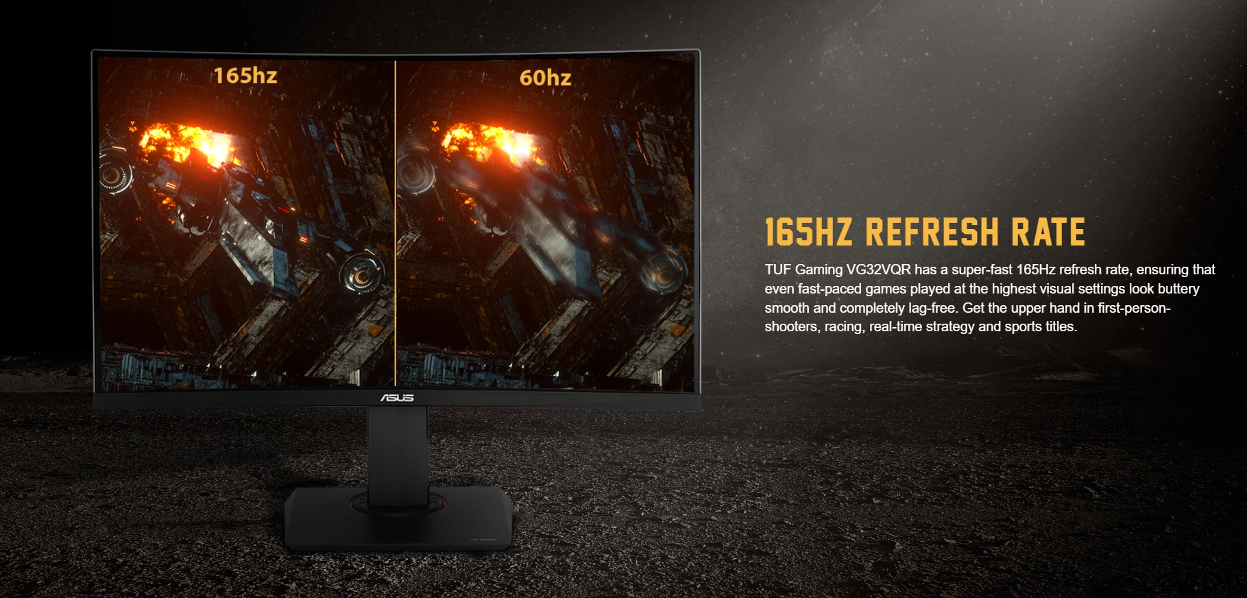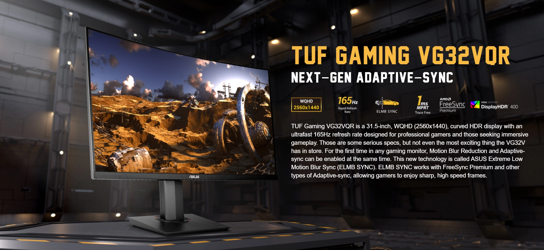 TUF Gaming VG32VQR Curved HDR Gaming Monitor – 32 inch (31.5 inch viewable), QHD (2560 x 1440), 165Hz, Extreme Low Motion Blur Sync™, Adaptive-sync, Freesync™ Premium,1ms (MPRT), DisplayHDR 400, WCG