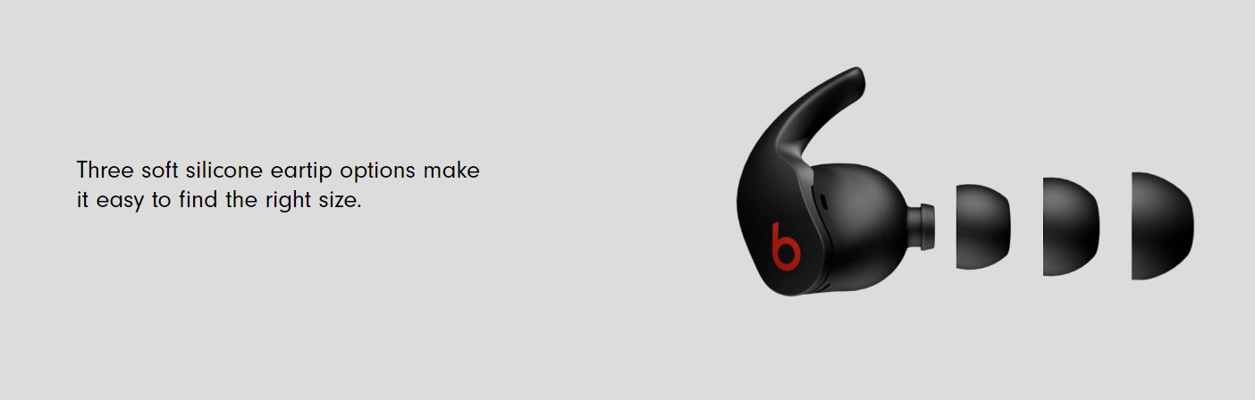 • Silicone eartips with three size options — S/M/L (medium pre-installed)