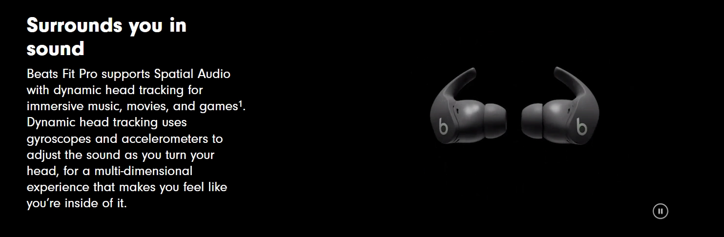 Spatial Audio with dynamic head tracking immerses you in music, movies, and games1