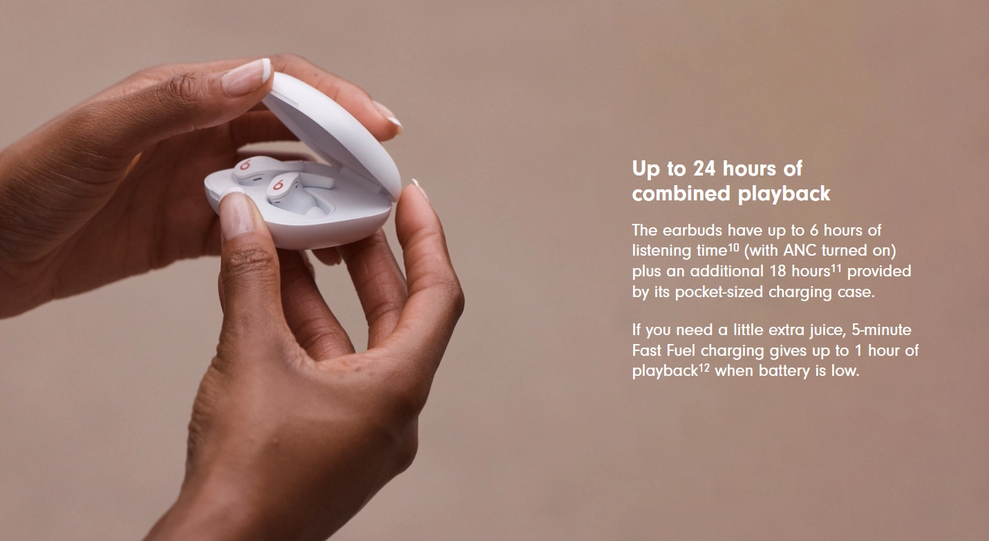 Up to 6 hours of listening tim plus an additional 18 hours provided by its pocket-sized charging case