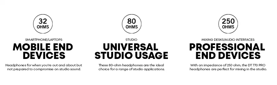 A sound volume that even amazes connoisseurs The DT 770 PRO headphones remain the top choice for music producers, sound technicians and broadcast users and are a firmly established piece of equipment in studios worldwide. These headphones are particularly appealing to professionals owing to their bass reference capabilities, but also because of the spacious reproduction that is absolutely remarkable for closed headphones.