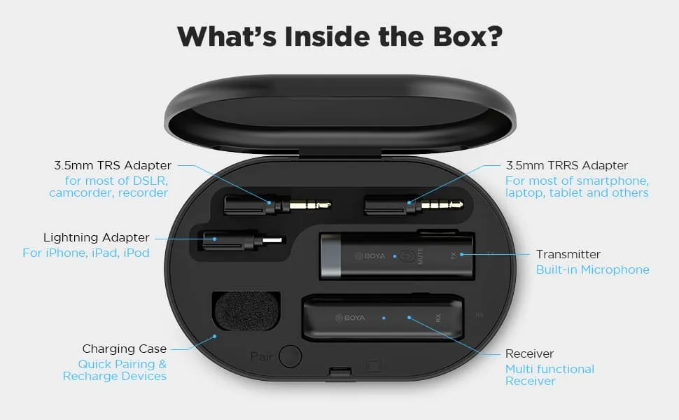 Ideal for journalists, YouTube/Instagram creators, TikTok personalities, and vloggers, the BOYA BY-WM3D is an easy-to-use, digital true-wireless microphone system designed to capture clear, intelligible speech to your iPhone/iPad, DSLR/mirrorless camera, or any smartphone/tablet equipped with a headphone jack.