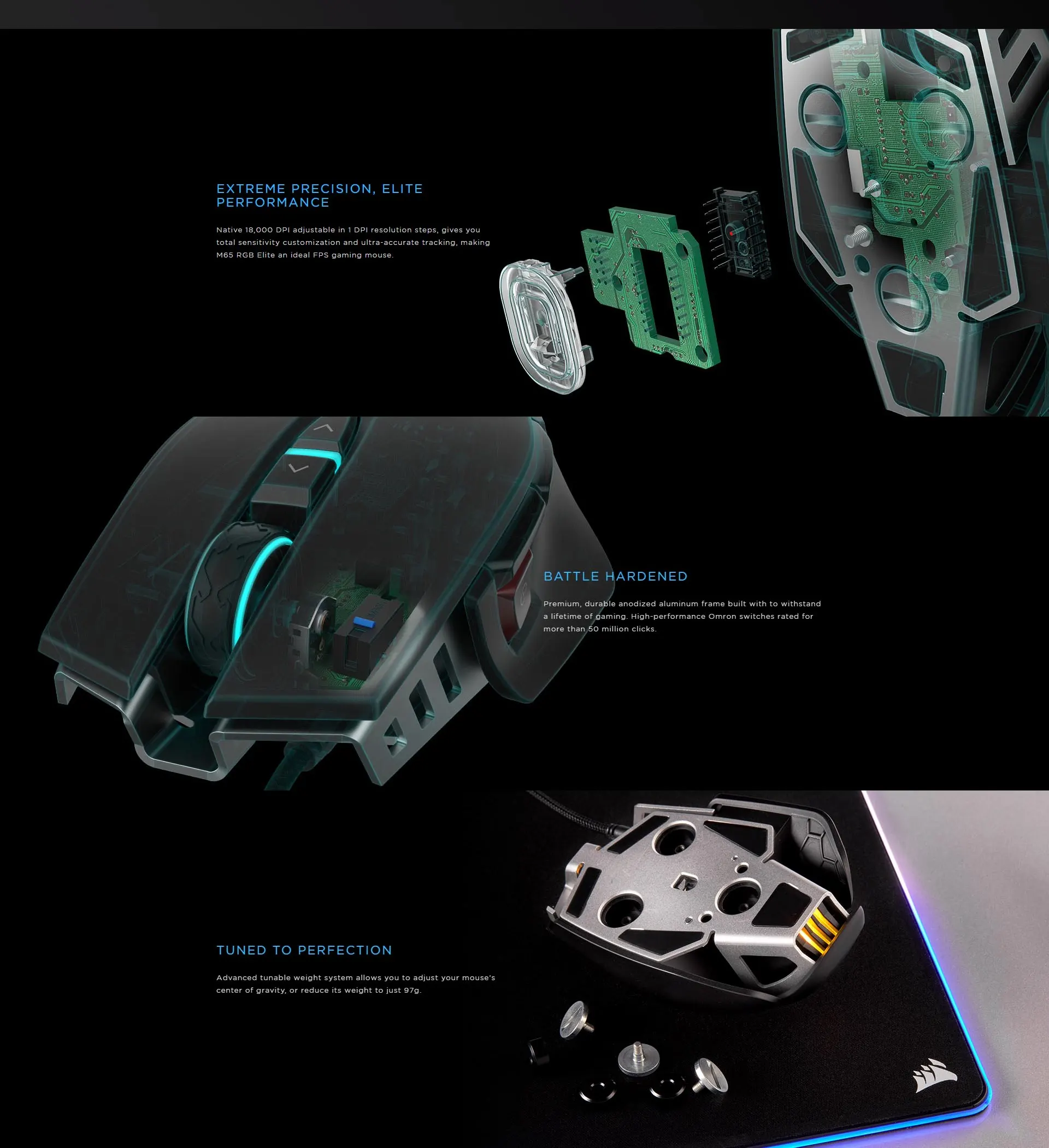 Corsair M65 RGB ELITE, Optical, 18000DPI Tunable FPS Gaming Mouse - Black best price from Alfuhod