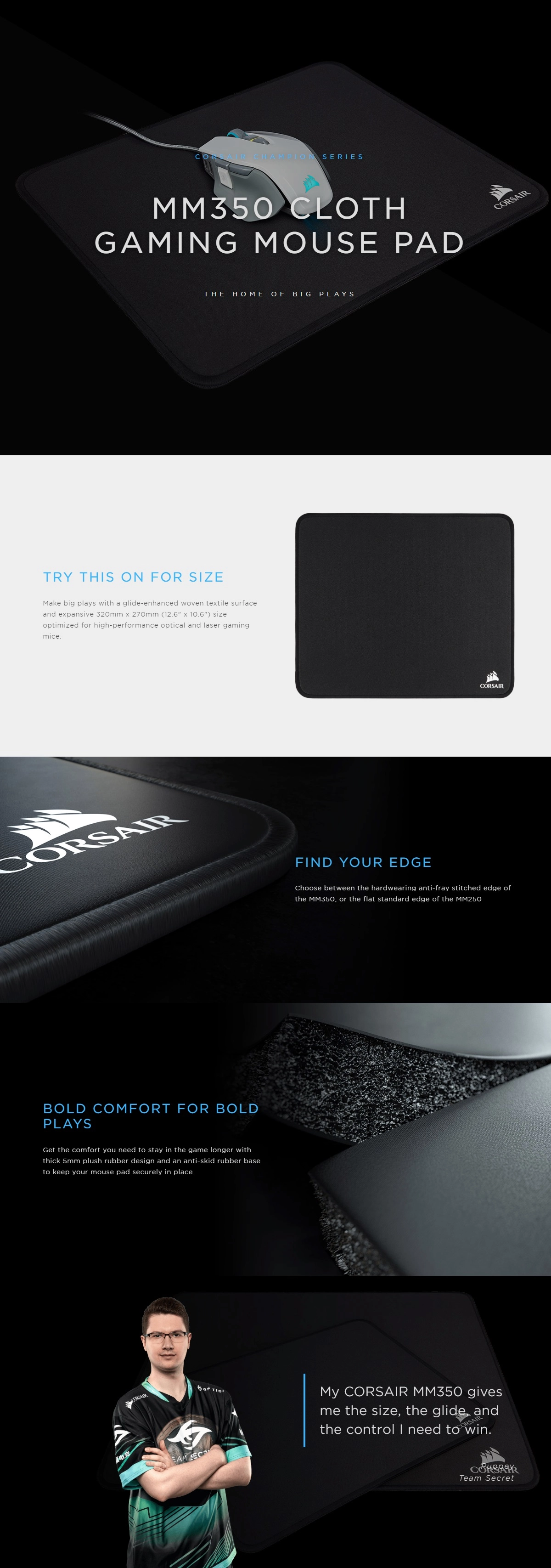 Corsair MM350 Champion Series Anti-Fray Cloth Gaming Mouse Pad – Medium 320 x 270 x 5 mm (Black)