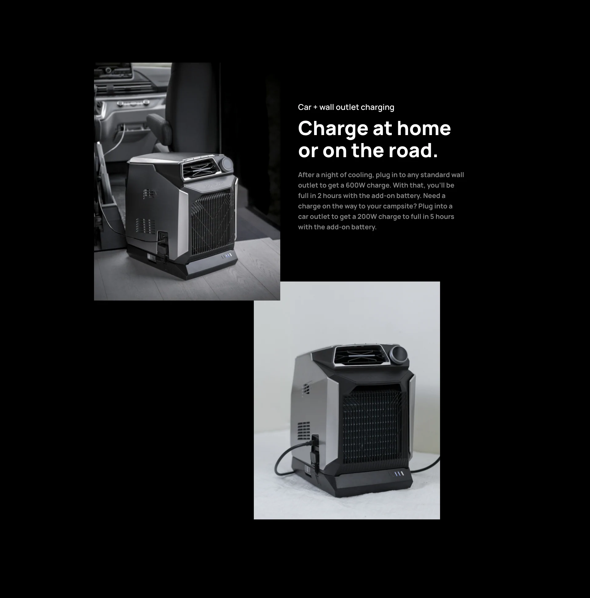 Use the 1008Wh Add-On Battery, DELTA Max, or DELTA Pro for an extra runtime of up to 12 hours without plugging into an AC outlet. Plug into an AC outlet for cooling without a battery.