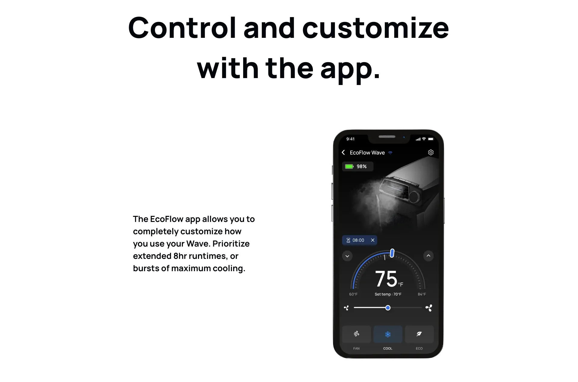 Wall outlets, solar, car or even portable power station charging mean you've always got cooling when you need it.