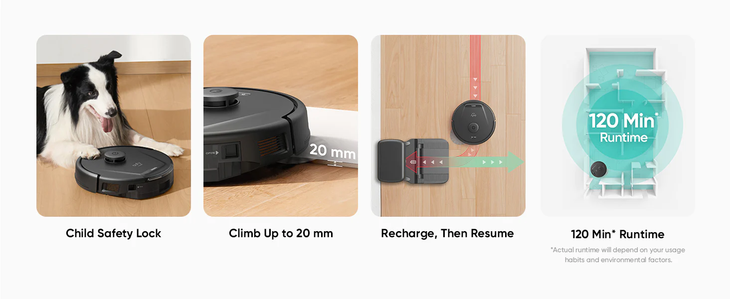 Climb Up to 20 mm: L60 effortlessly climbs over thresholds and the edges of carpets without getting stuck for extended cleaning coverage.