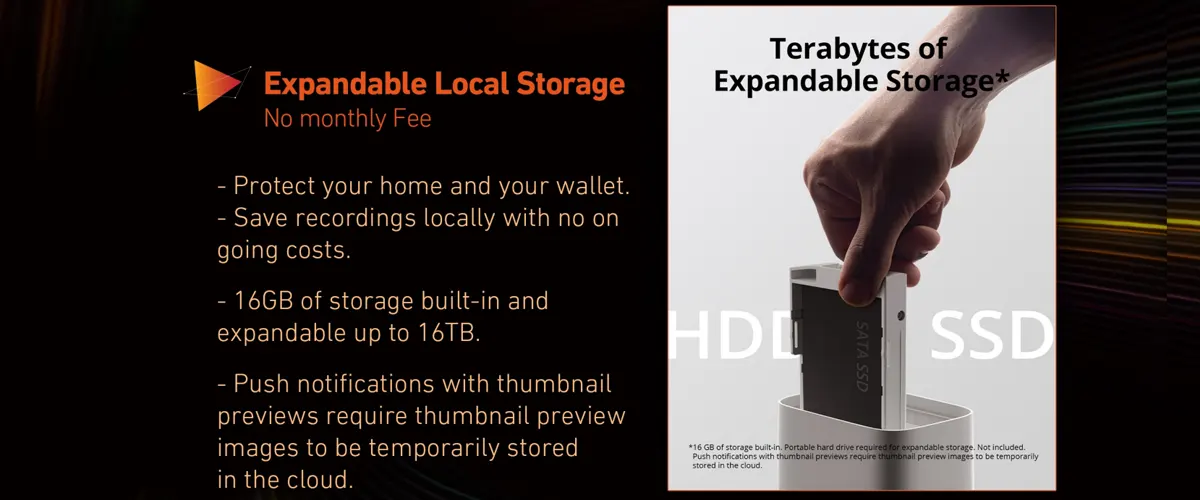 • Up to 16 TB Expandable Local Storage (Additional Storage Drive Not Included)