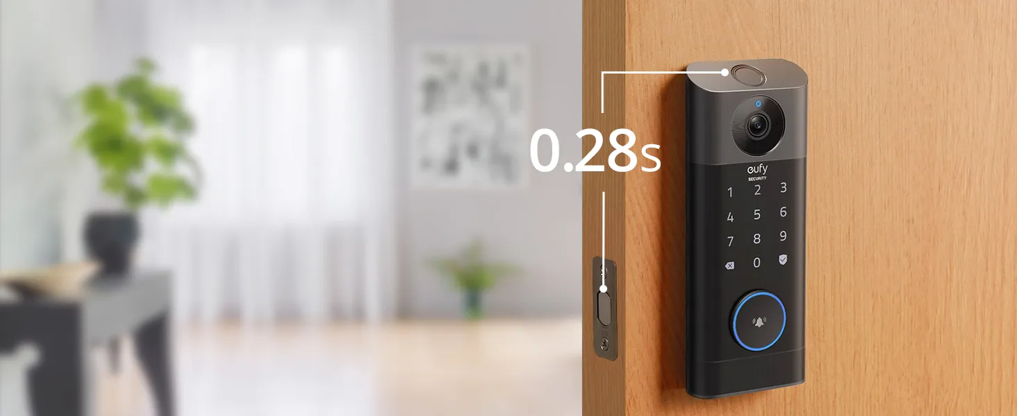The cutting-edge chip and ultra-thin fingerprint film recognize you in 0.3 Seconds, and unlock your door in 1 second. You can also control your Smart Lock from the eufy Security App, by talking to your Alexa or Google Voice Assistant, or using the keypad or keys.