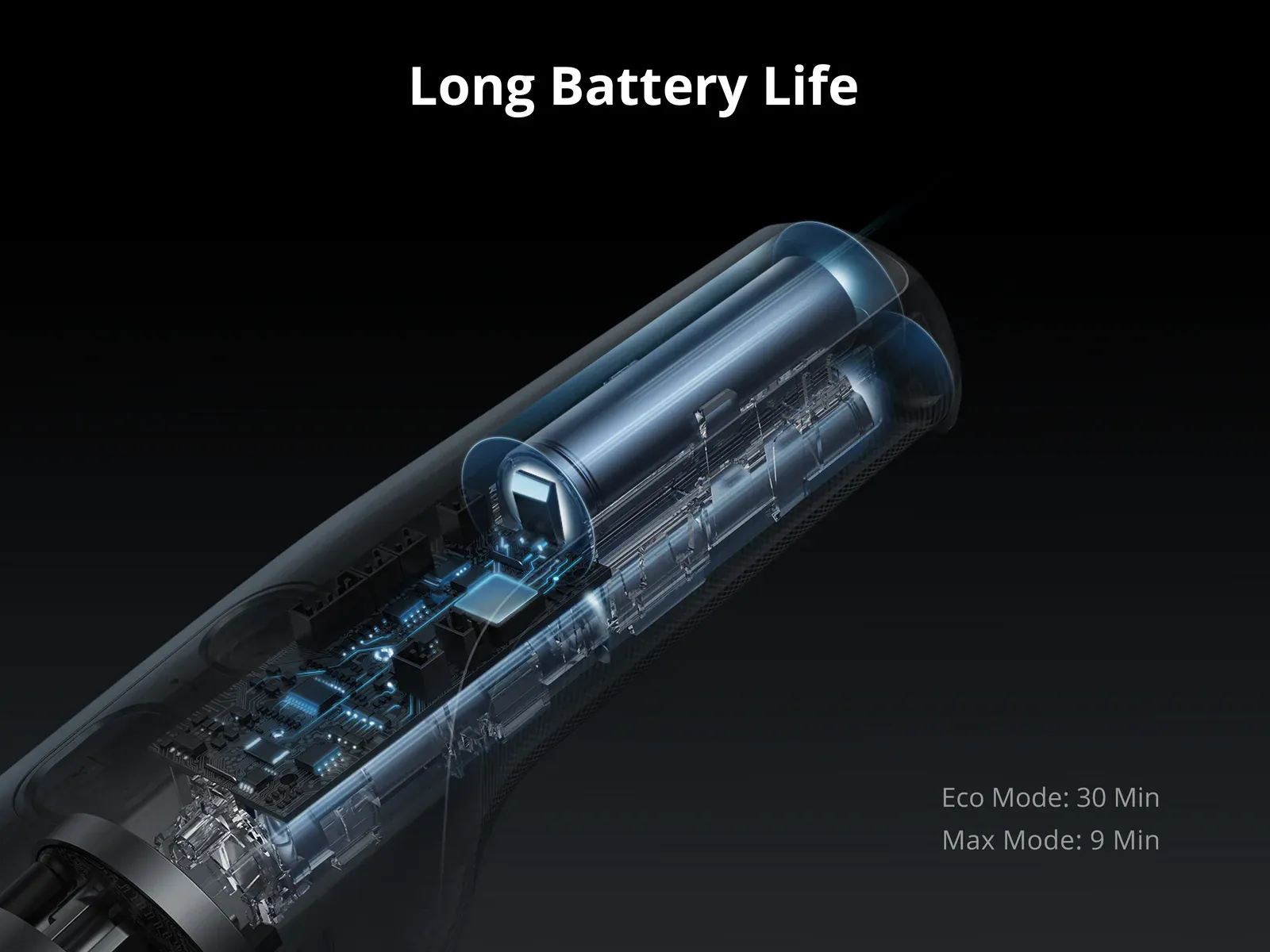 • Performance: Eco Mode Suction Power 13AW / 8kPa | Max Mode Suction Power 40AW / 14kPa | Eco Mode Runtime 30 mins | Max Mode Runtime 9 mins | 2 Speed Mode Options | Noise Level 68 dB