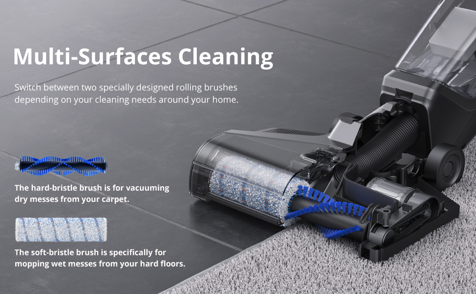 The two specially designed rolling brushes are perfect for a variety of hard floors and carpets throughout your home.