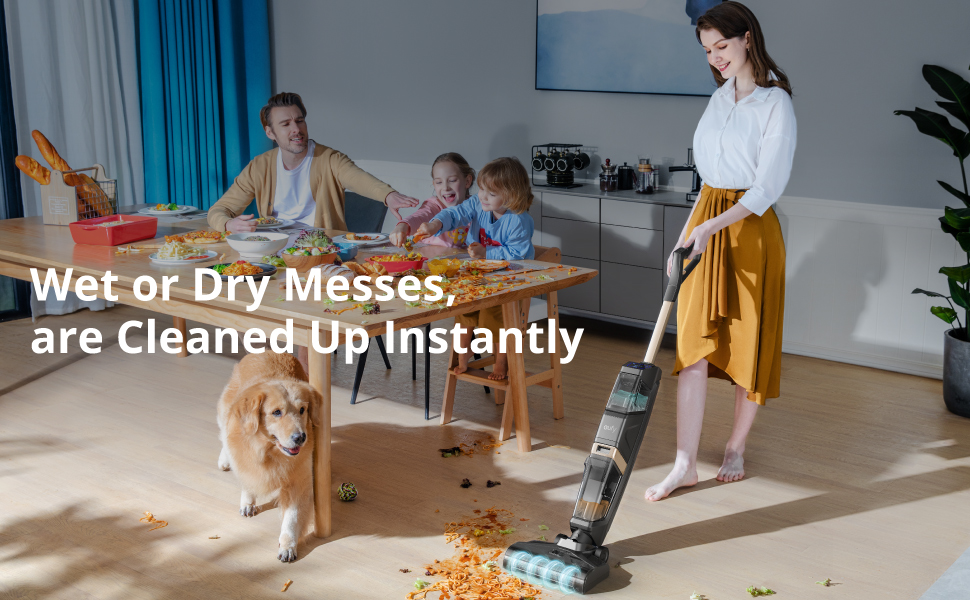 WetVac not only vacuums, but it also conveniently cleans its rolling brush as it mops. Plus, it auto cleans and dries itself after cleaning your floors.
