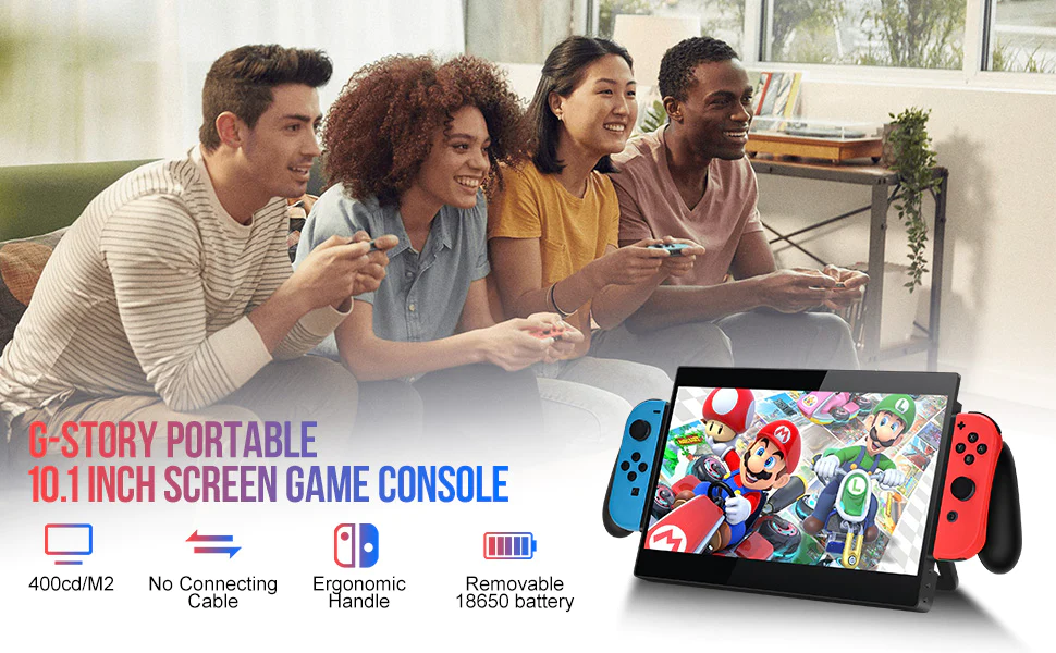 10.1‘’ Portable Monitor for Switch, improves the visual effects of the game in all aspects by increasing the size of the game screen and superior brightness (400CD/M2). Order your G-STORY portable monitor today and start enjoying it!