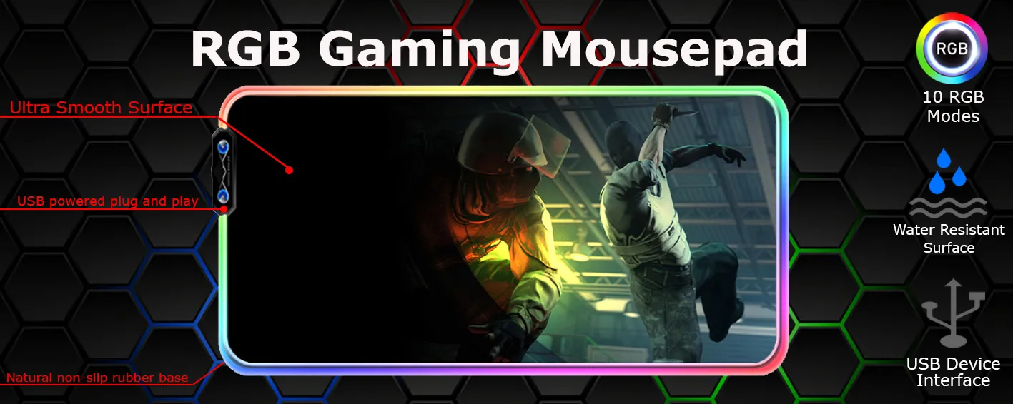 The RGB mouse pad has colorful lighting colors. To create a unique gaming atmosphere, RGB mouse pad is your best choice.