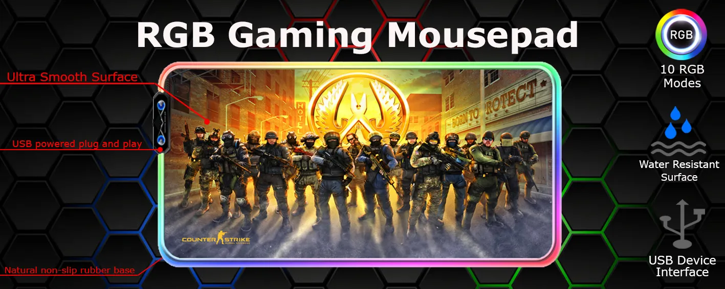 GAMEON Gaming Mousepad With RGB Lighting (900x400x3mm) - CS:GO Theme Edition