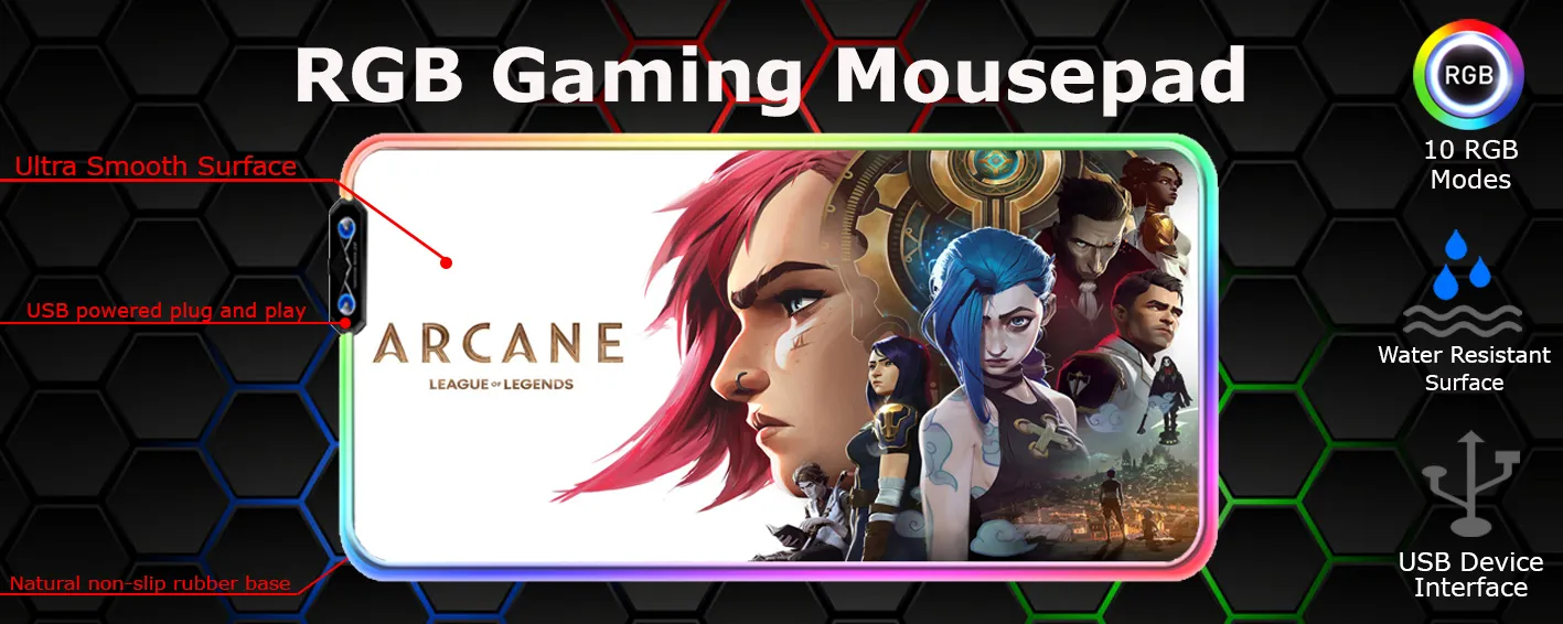 Product NameGAMEON Gaming Mousepad With RGB Lighting (900x400x3mm) - League Of Legends: Arcane Edition