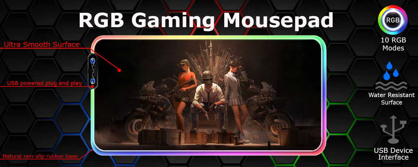 The RGB mouse pad has colorful lighting colors. To create a unique gaming atmosphere, RGB mouse pad is your best choice.