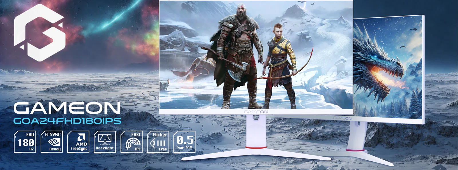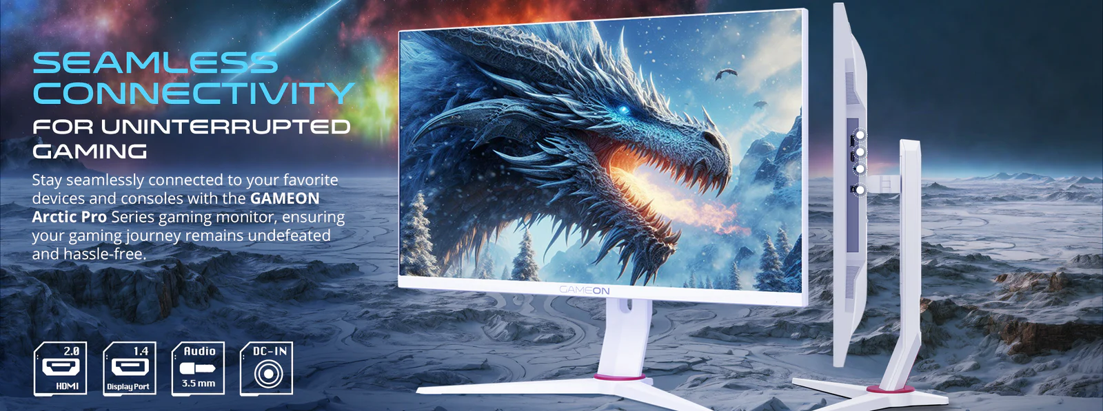 Gameon Goa24fhd180ips Artic Pro Series 24" Fhd, 180hz, Mprt 0.5ms, Fast Ips Gaming Monitor (Support Ps5) - White best price from Alfuhod Shop online Gameon Goa24fhd180ips Artic Pro Series 24" Fhd, 180hz, Mprt 0.5ms, Fast Ips Gaming Monitor (Support Ps5) - White and free same day delivery from Alfuhod in Kuwait.