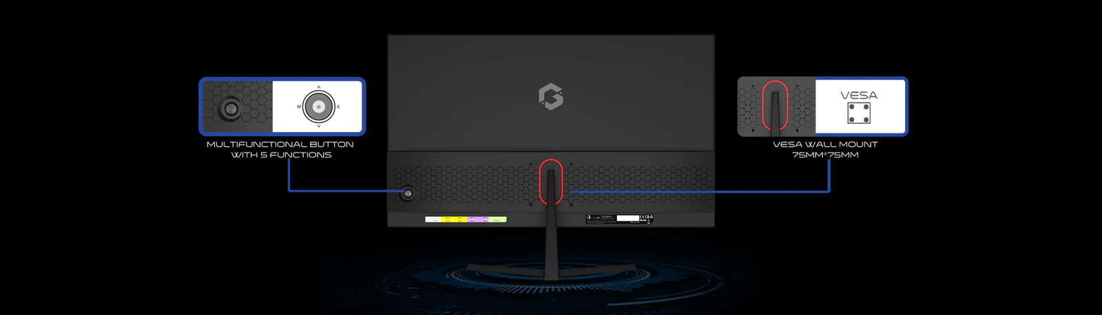 The Multifunctional button can control 5 functions for operating and adjusting the monitor perfectly for your utilization. The 75mm*75mm VESA mount gives you more options for mounting the screen
