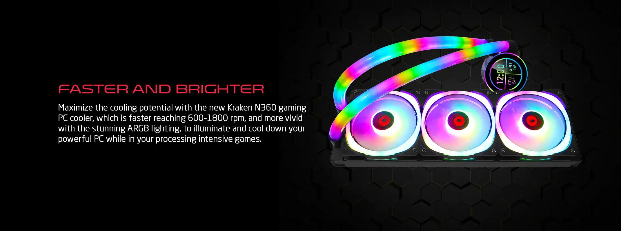 GAMEON - KRAKEN N360 LCD Display Liquid CPU Cooler 360mm With ARGB Tube - Black