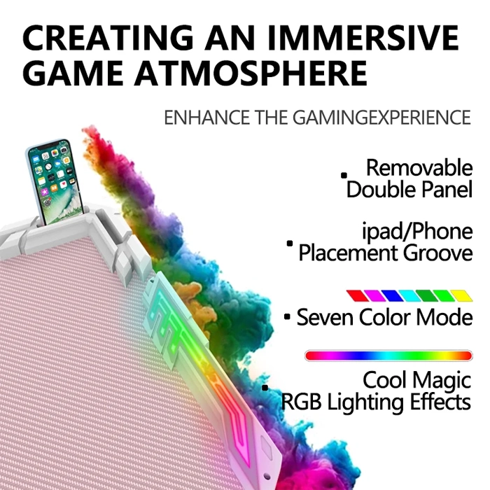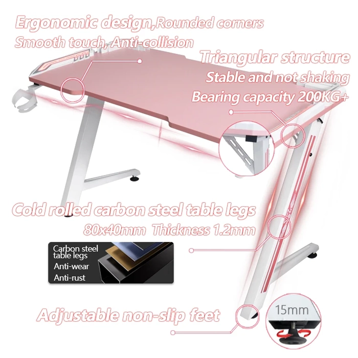 Product NameGaming Desk With Armour Rgb Light Zp Leg - Pink/white ZP3-1200