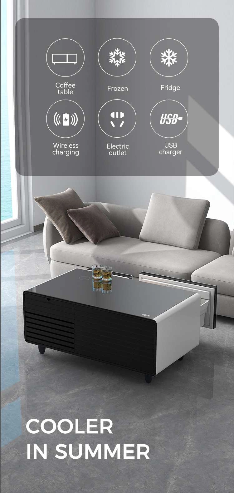 Product NameGamvity Smart Coffee Table With 93l Refrigerator Frozen & fridge Drawer Tb90 - White