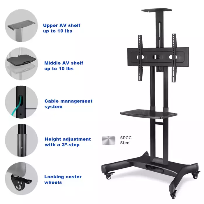 Product NameGamvity Trolley With Wheels Adjustable Height Mobile Tv Mount Stand Height Adjustable Lcd Screen Floor Stand Carts With Dvd Shelf (32-70inch)