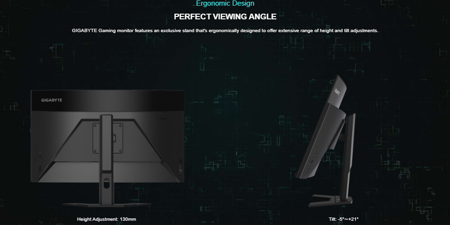 GIGABYTE Gaming monitor features an exclusive stand that's ergonomically designed to offer extensive range of height and tilt adjustments.