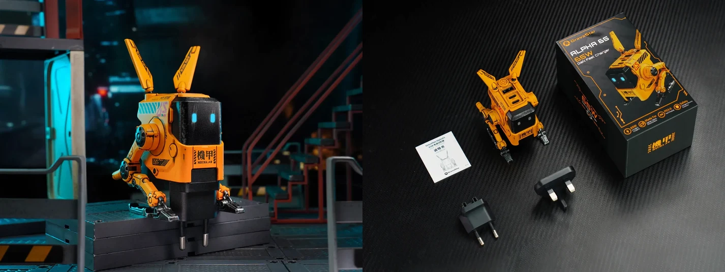 Alpha 65W GaN Fast Wall Charger, your one-stop solution for efficient and versatile charging. This product combines powerful GaN technology with a fun, transformable design, ideal for charging multiple devices at once.